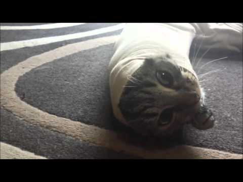 Our cat Jessicat waking up from sleeping in a sleeve of my sweatshirt.